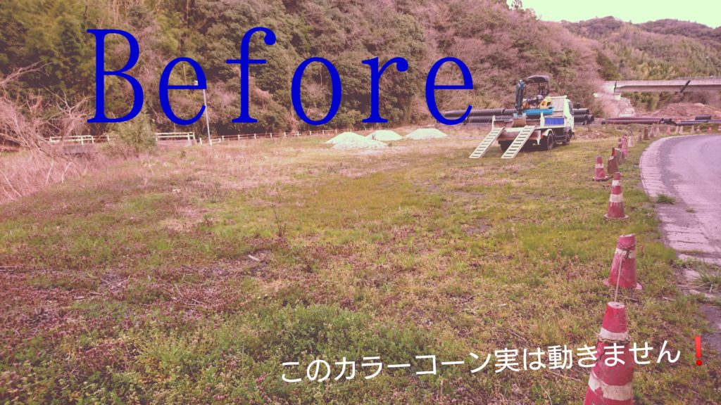 重機の排土板で押しつつ草ごときれいにすることによって少しでも草を軽減できるようにしました!